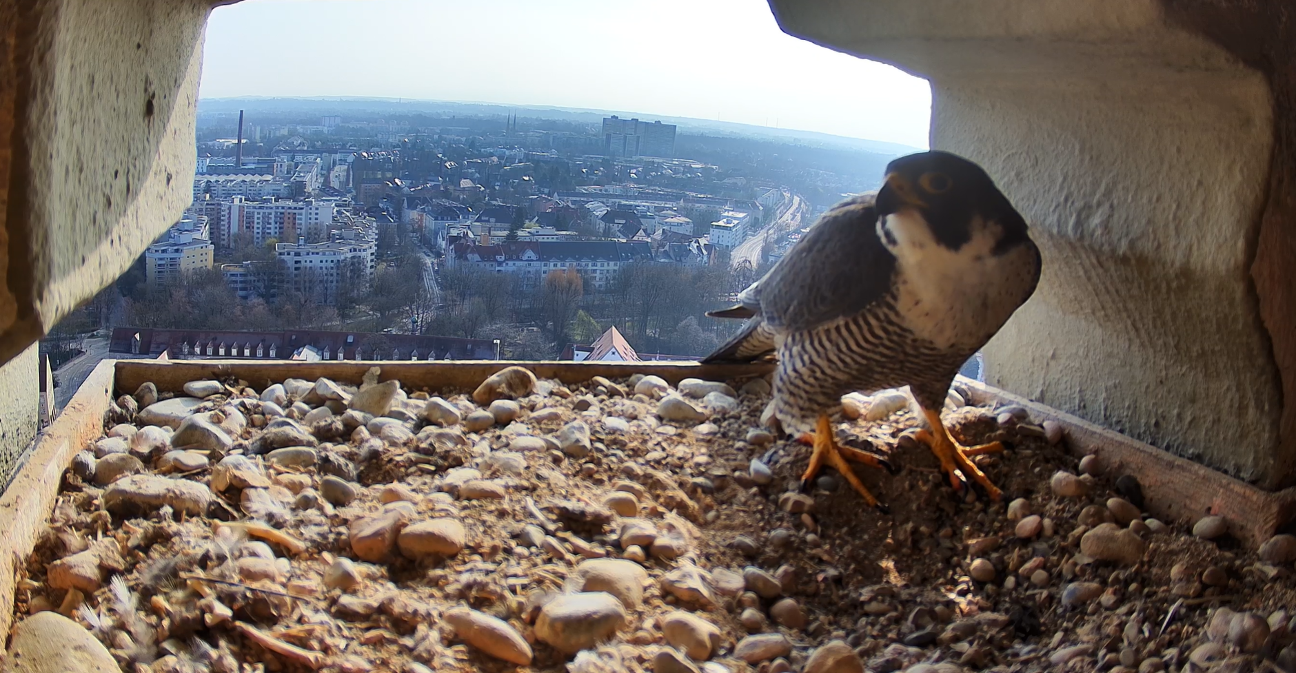 Ab sofort können Sie das Brutgeschehen unserer Wanderfalken in Echtzeit verfolgen. Dank der erfolgreichen Installation einer neuen Livestream-Kamera durch die Experten von Terra HD blicken wir direkt in den Nistkasten hoch über den Dächern von Augsburg.